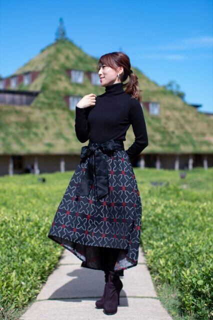 合わせるトップスによって普段着にもちょっとしたパーティー着にも変身できます。
