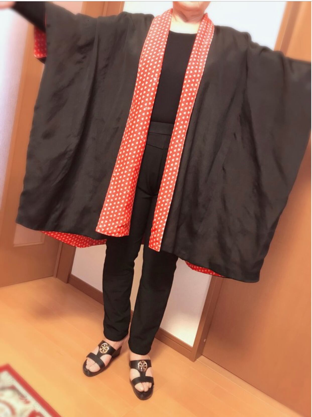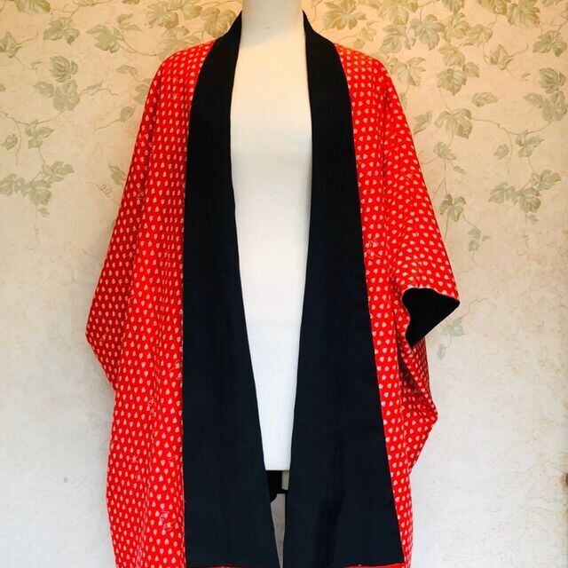 手を広げますとたっぷりの袂(たもと)で正絹ならでは、薄手なのにとっても暖かいコートです!