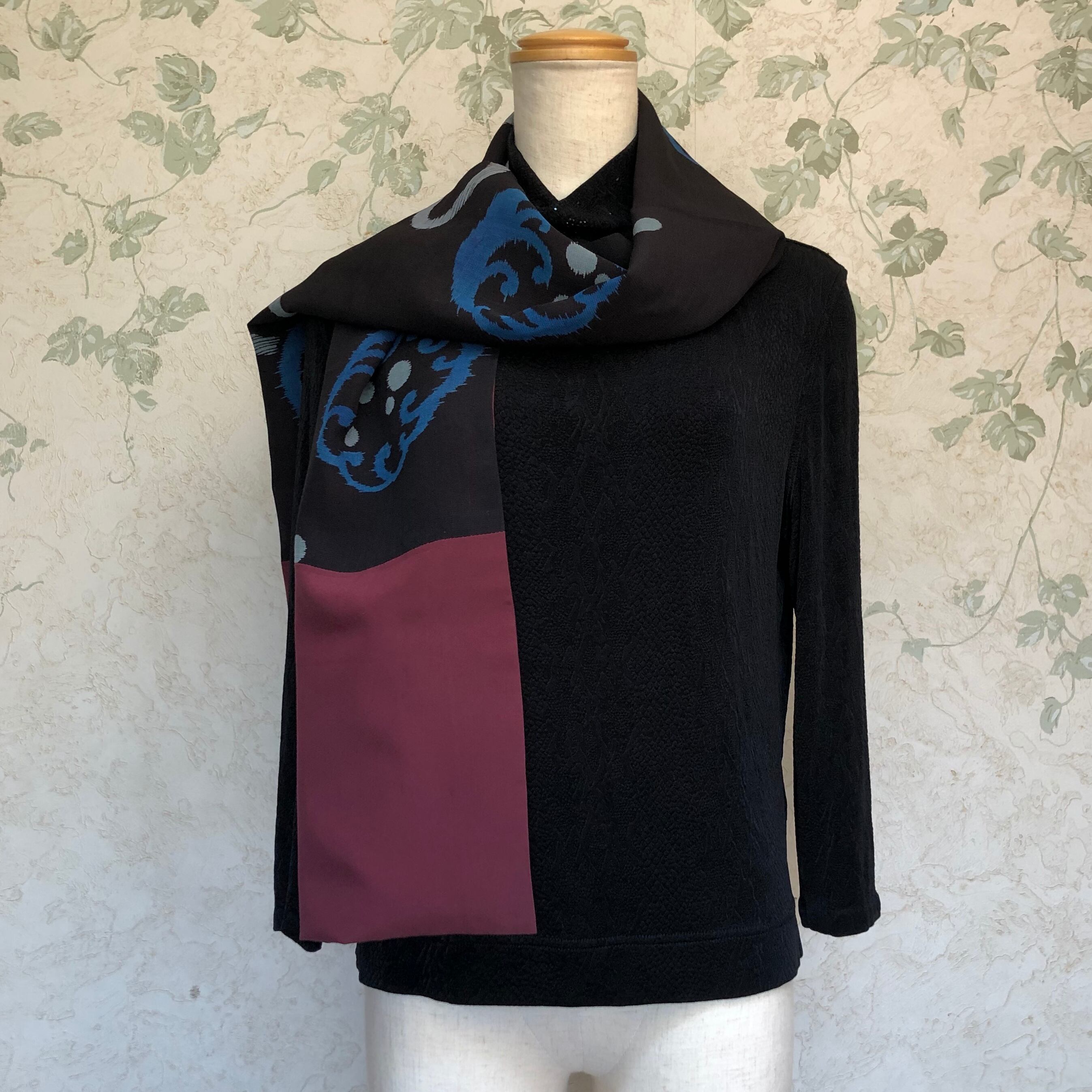 普段ストールを身に着けない方にも取り入れやすく、何にでも合わせやすい和柄でお作りしました。
