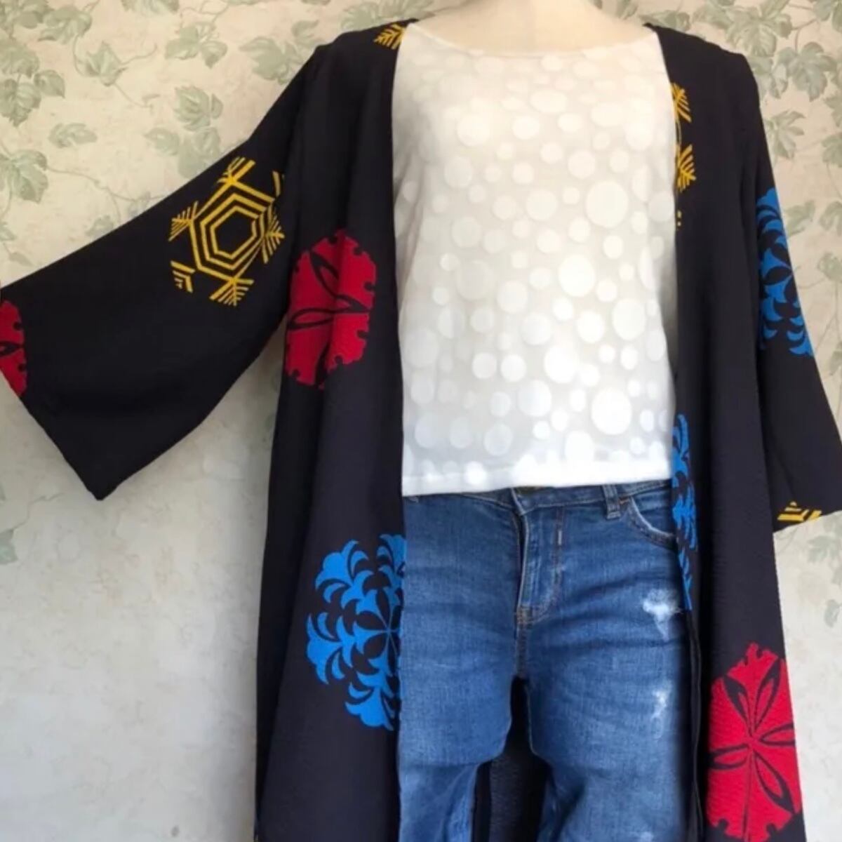 個性的な柄のお着物でサラッと羽織れるカーディガンを作りました!