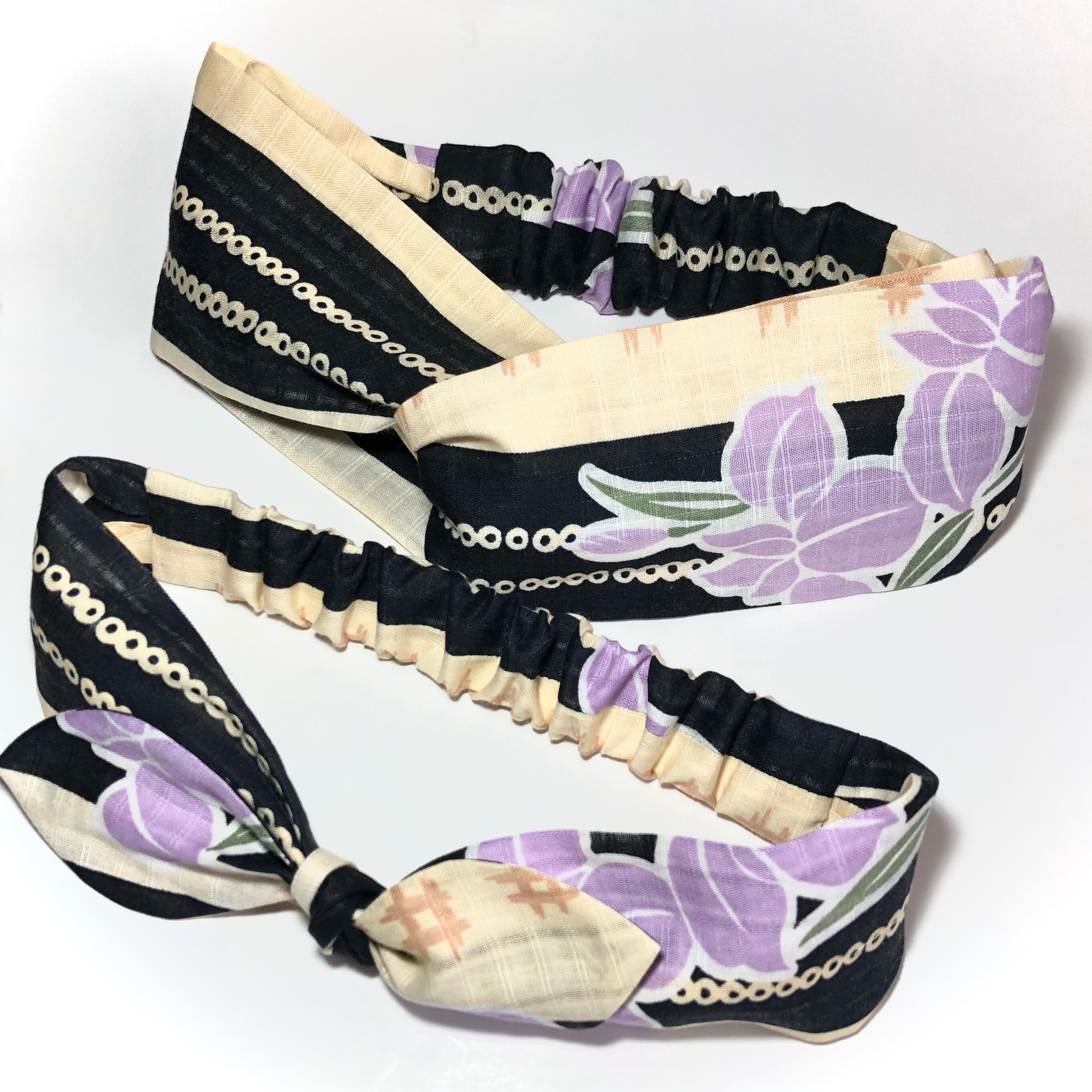 同じ布でクロスターバンとリボンヘアバンドをお作りしましたので一緒にコーディネートをお楽しみください!