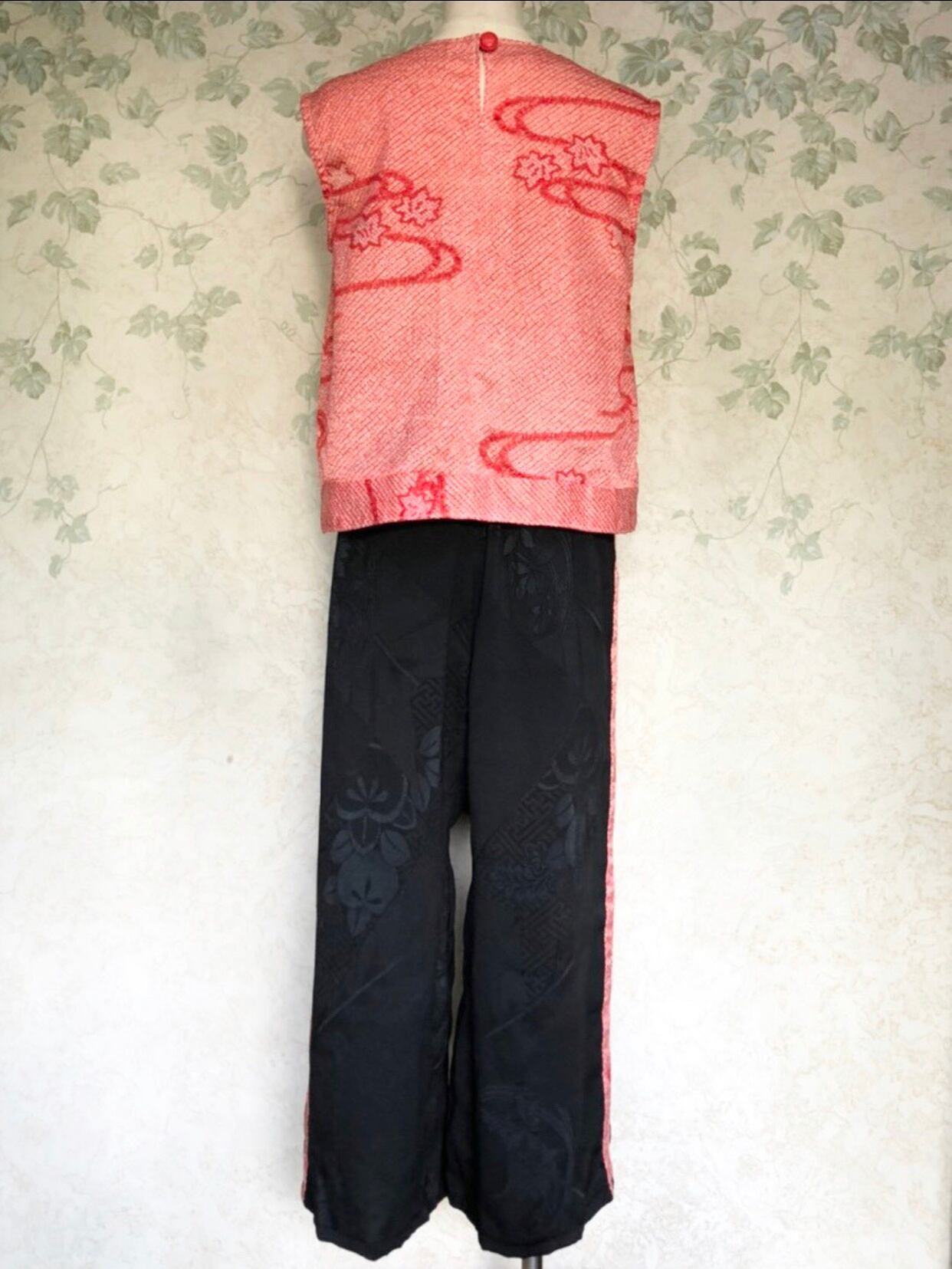 画像で合わせている同じ着物地でお作りしましたトップスもございますので合わせて着ていただくとより華やかでスタイリッシュなコーディネートができます!