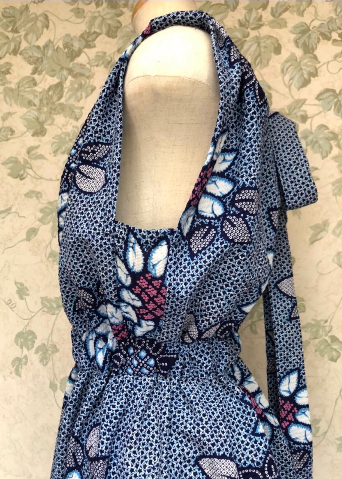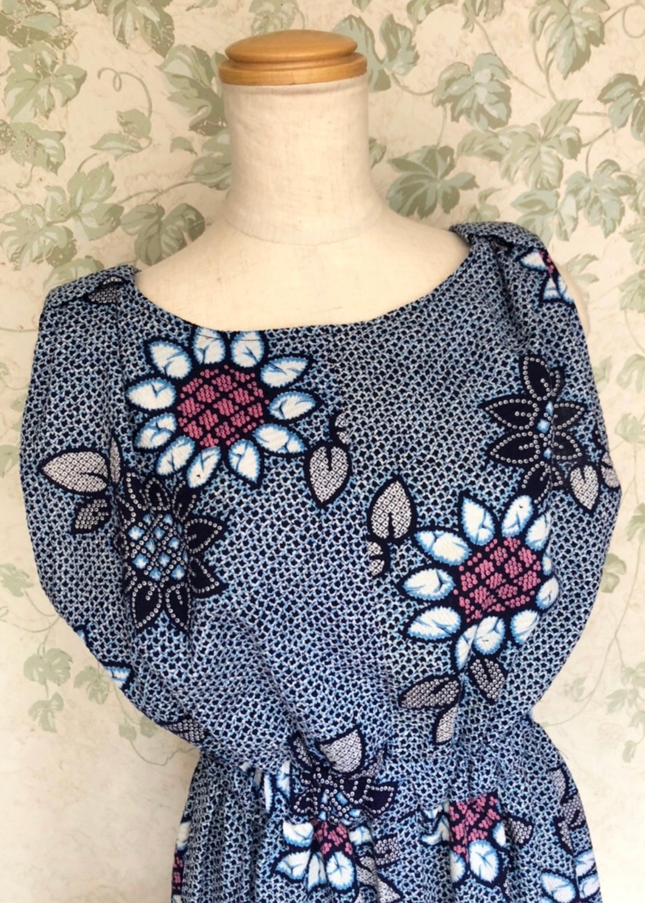 素敵な絞りの浴衣地のコントラストがパッと華やかで優雅な中に上品さがある夏を感じるワンピースです。