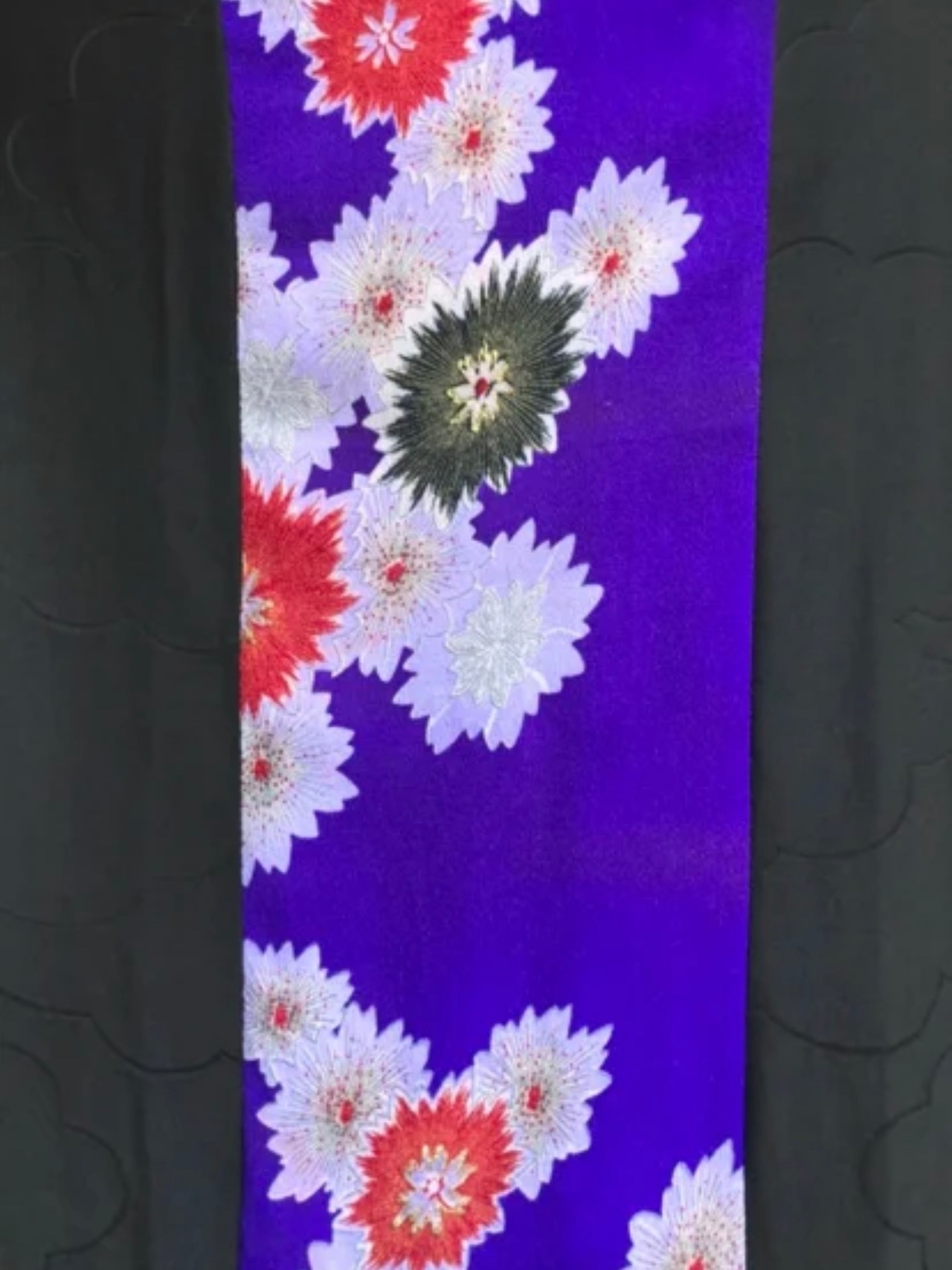 サイドに鮮やかな紫の古典的な和柄を入れることによって上品な華やかさを持つ逸品になりました。