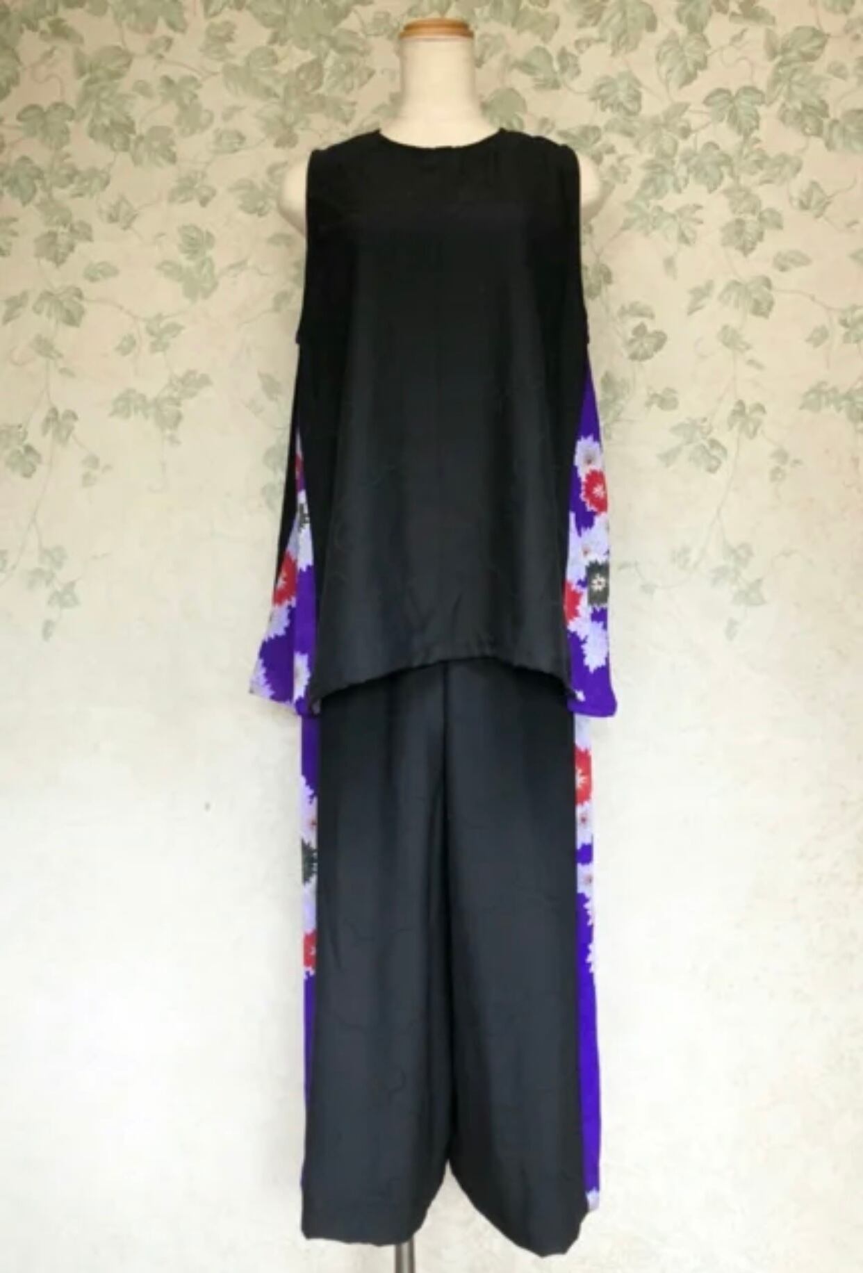【着物リメイク】和柄 アクセント ガウチョセットアップ