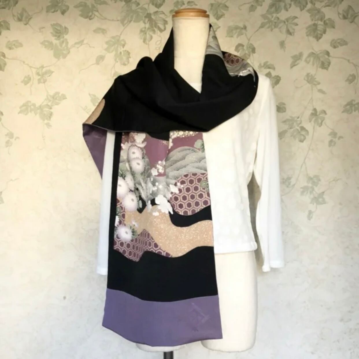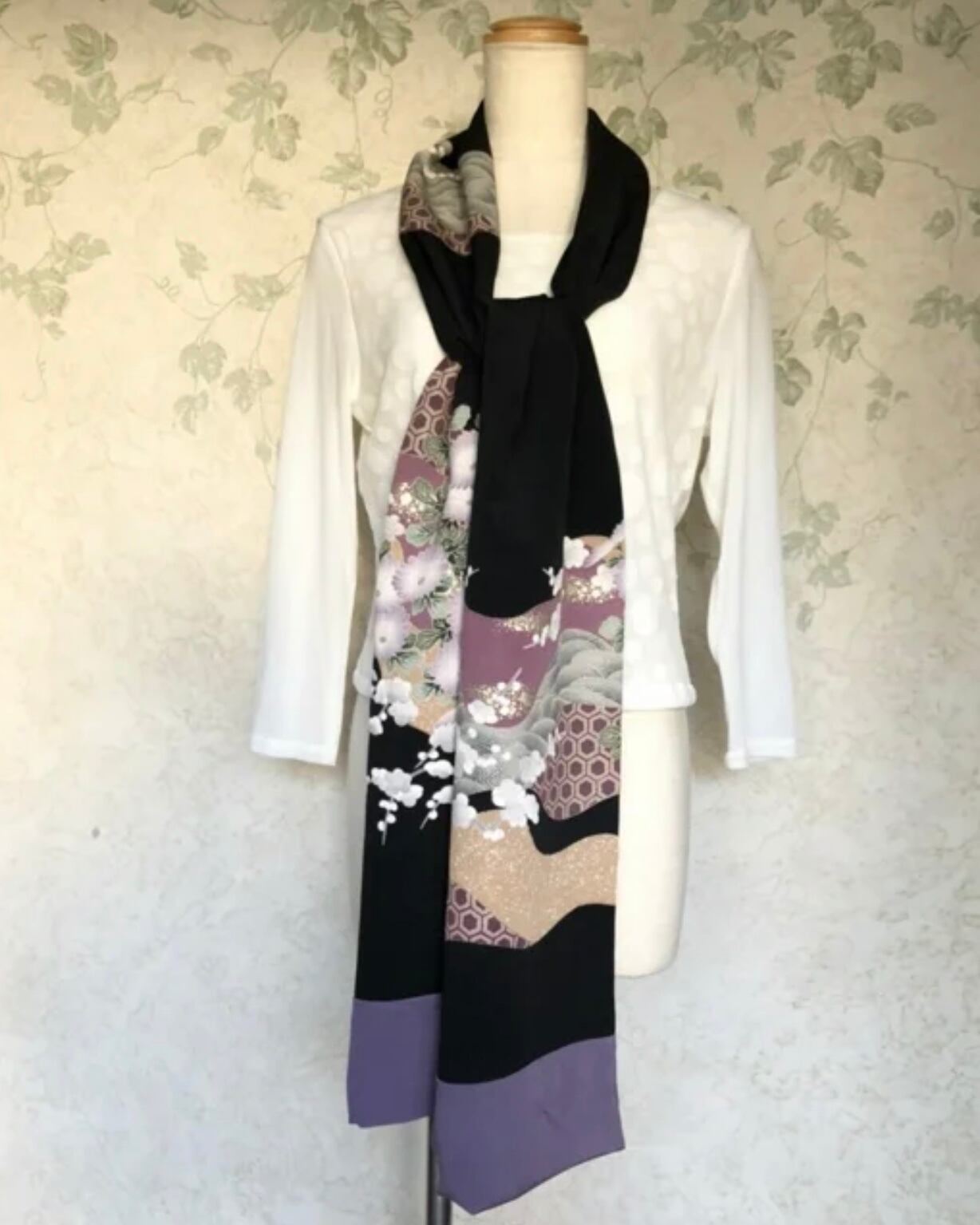 普段ストールを身に着けない方にも取り入れやすく、何にでも合わせやすい和柄でお作りしました。