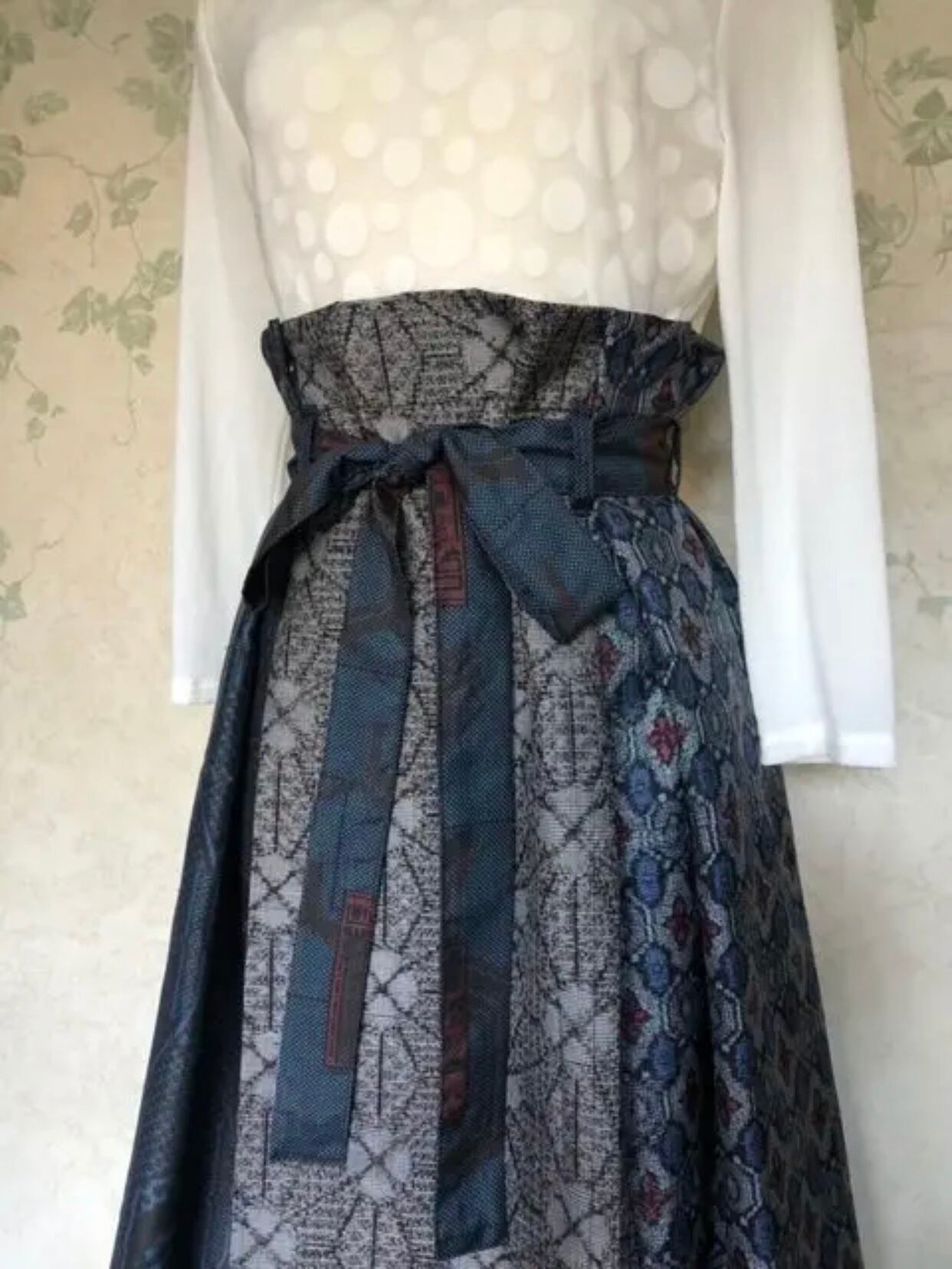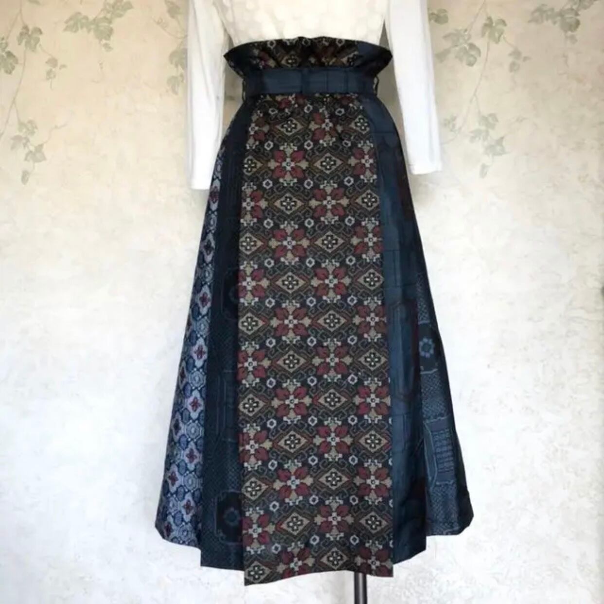 5種類もの大島紬を使用しておりますので高級感の中にも遊び心満載のスカートに仕上がりました。