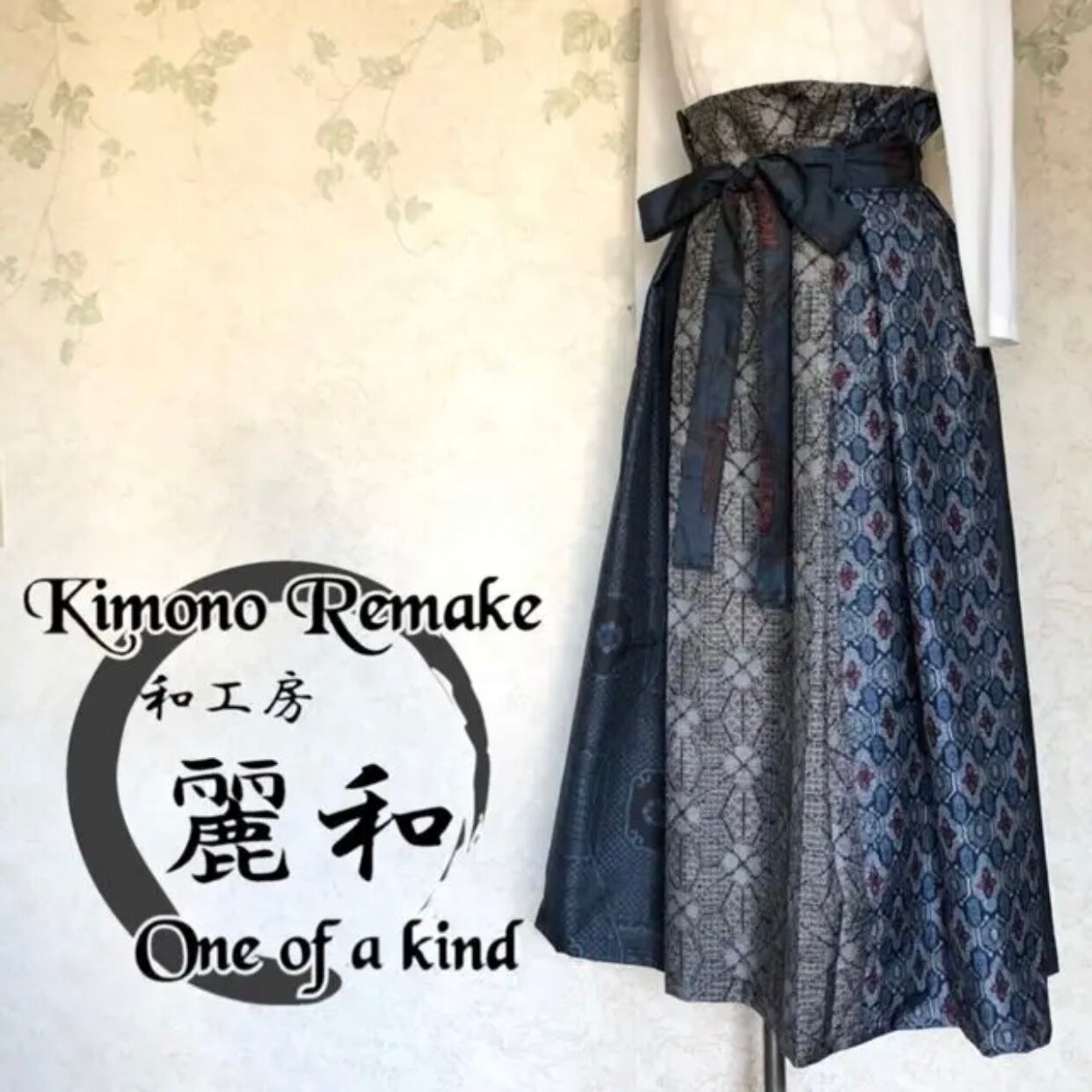 【着物リメイク】大島紬 ミックスアラカルトタックラップスカート