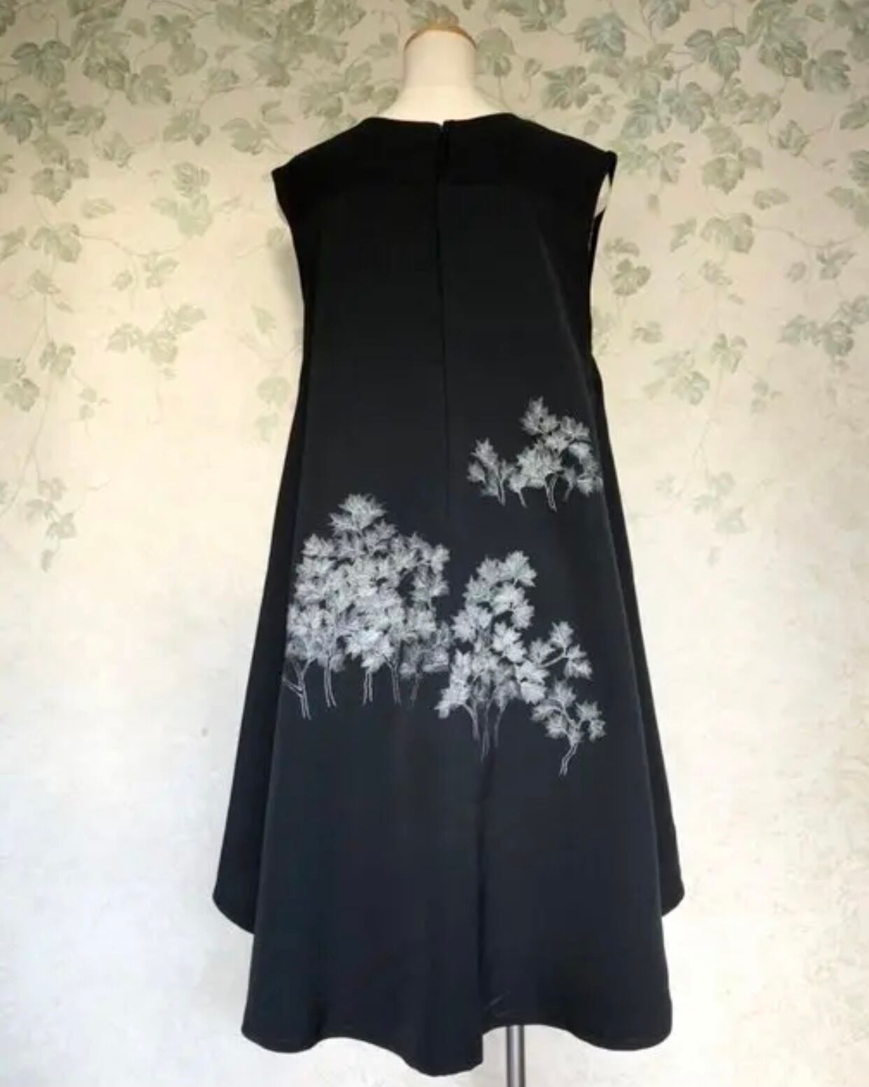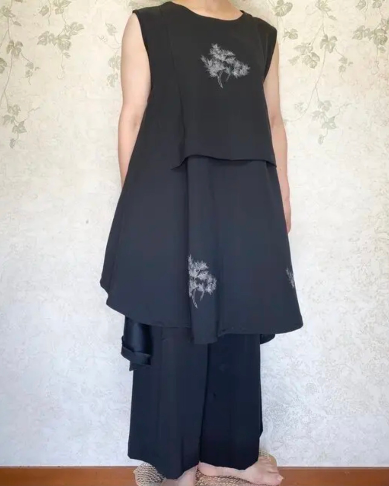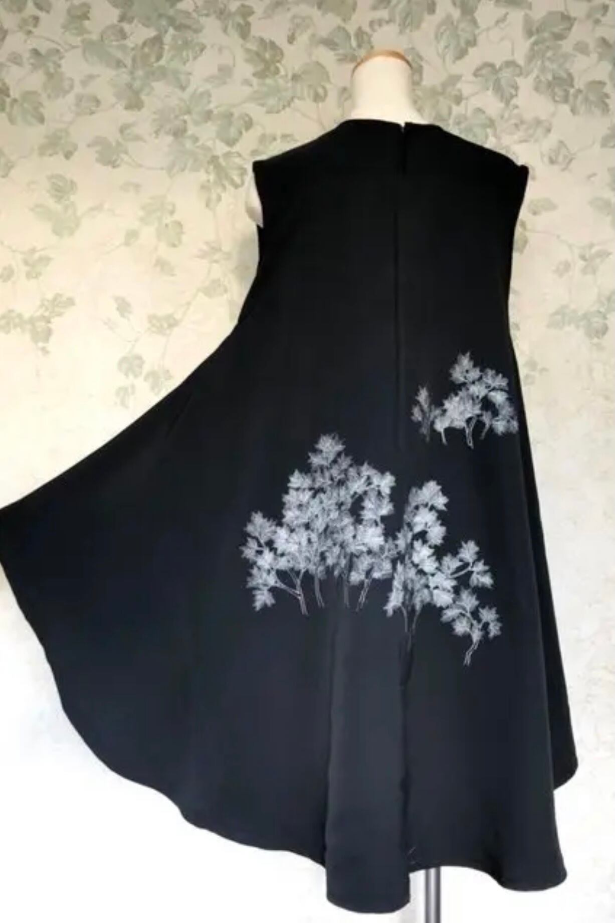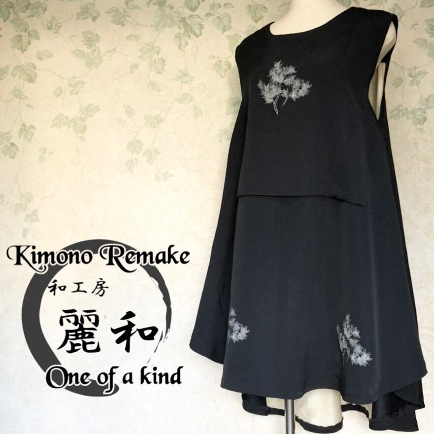 【着物リメイク】サーキュラー チュニック 黒刺繍