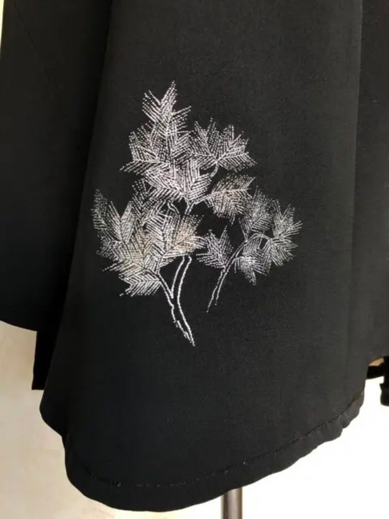 黒地に白と金糸があしらわれた刺繍が素敵な羽織でサーキュラーチュニックをお作りいたしました。