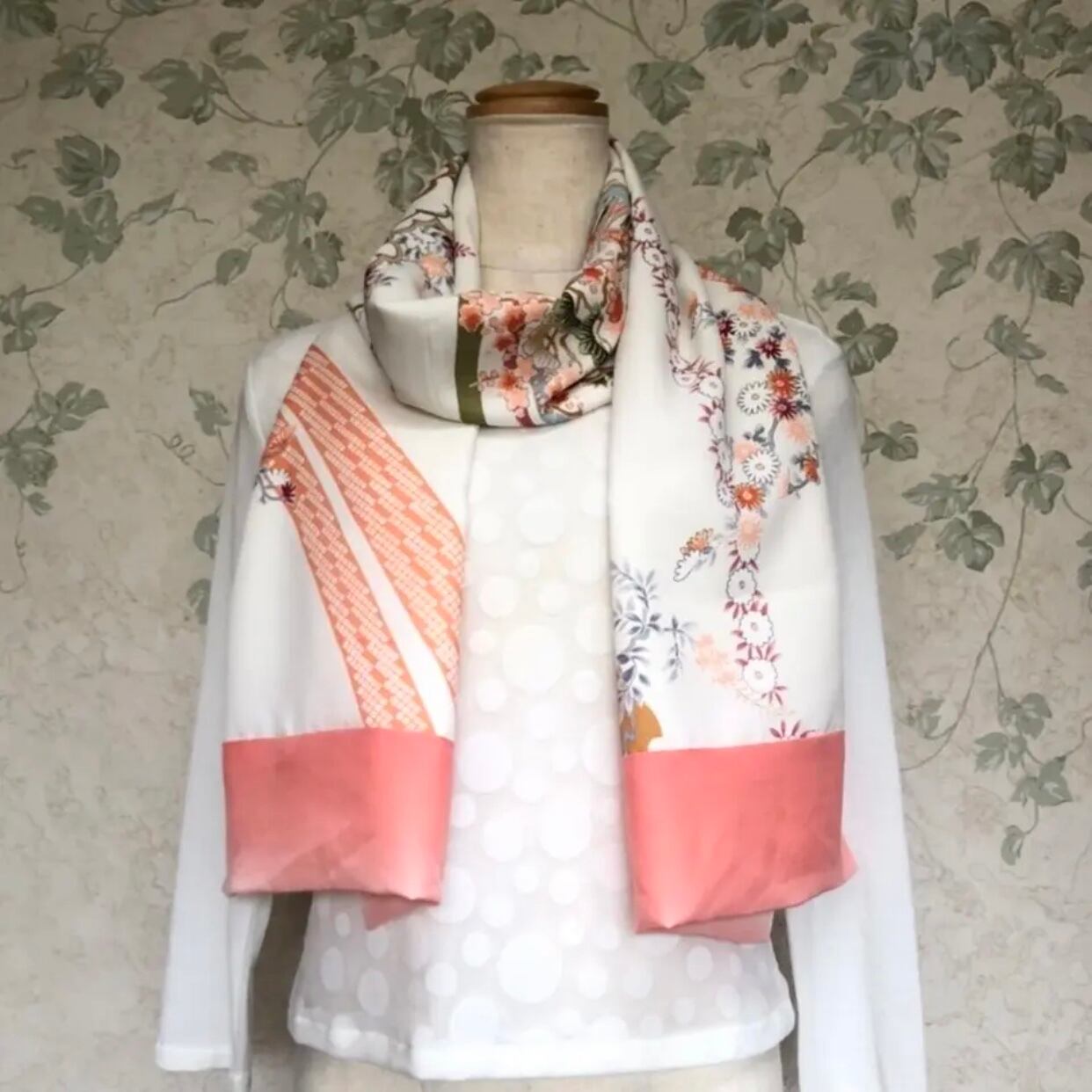普段ストールを身に着けない方にも取り入れやすく、何にでも合わせやすい和柄でお作りしました。