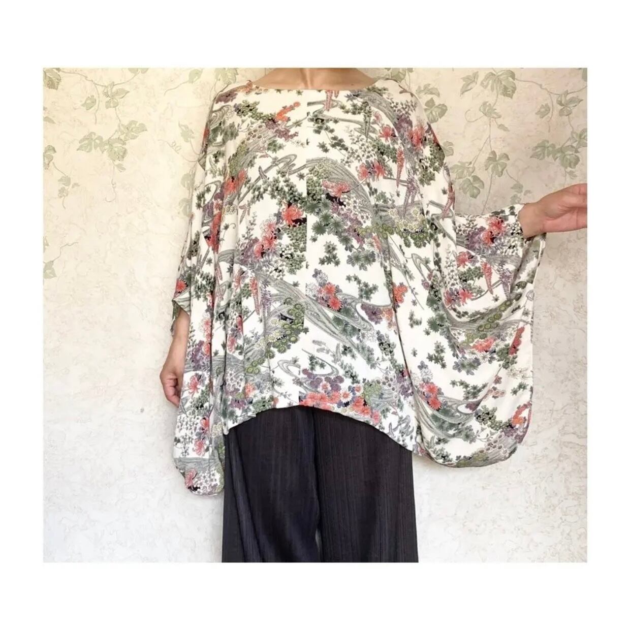 ポンチョ風のプルオーバーを着物リメイクさせていただきました!