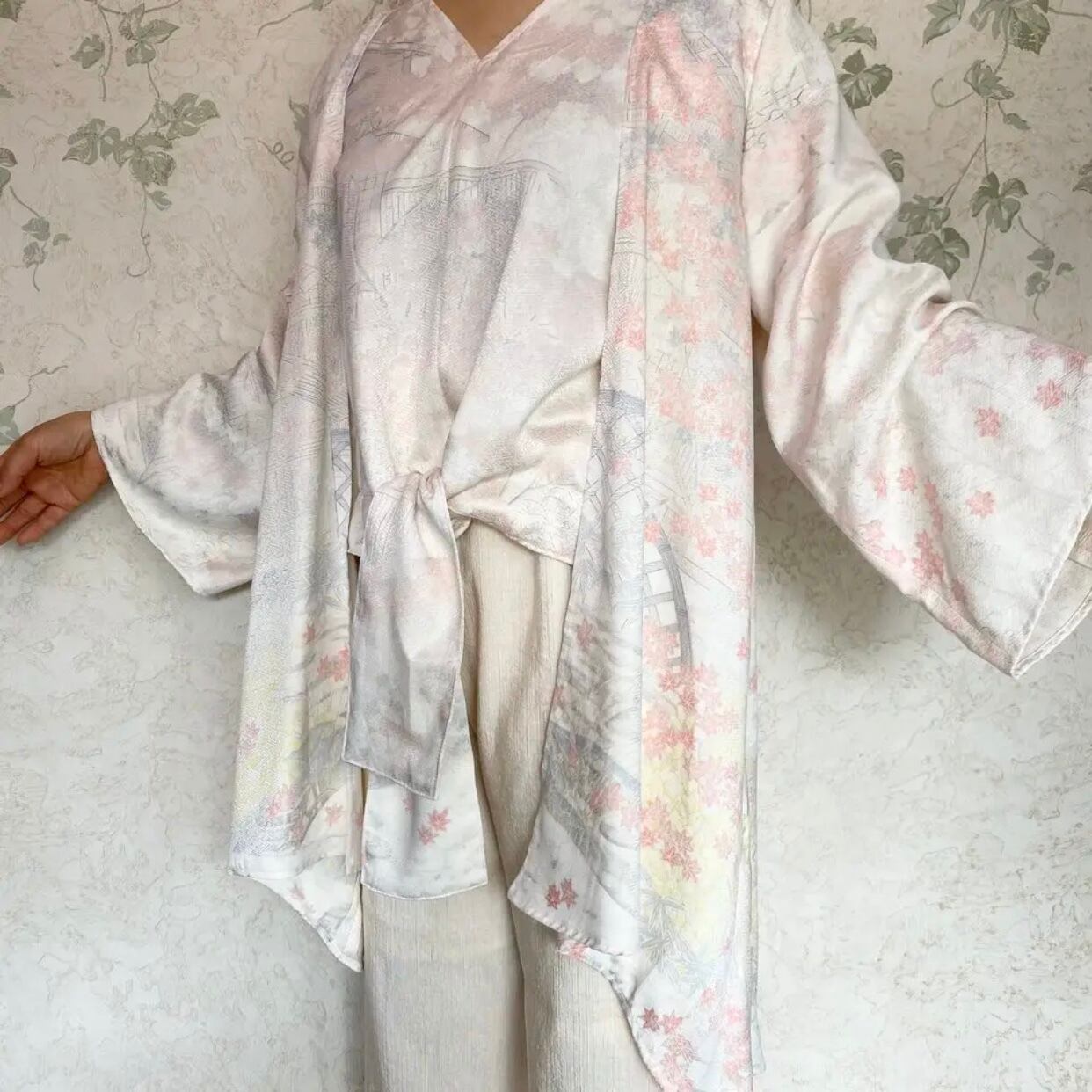 【着物リメイク】脱いでも邪魔にならないロング丈カーディガンのアンサンブル