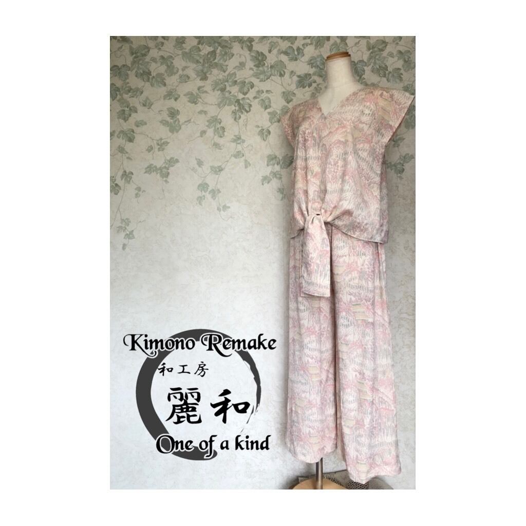 【夏 着物リメイク】前結びVネックデザイン セットアップ