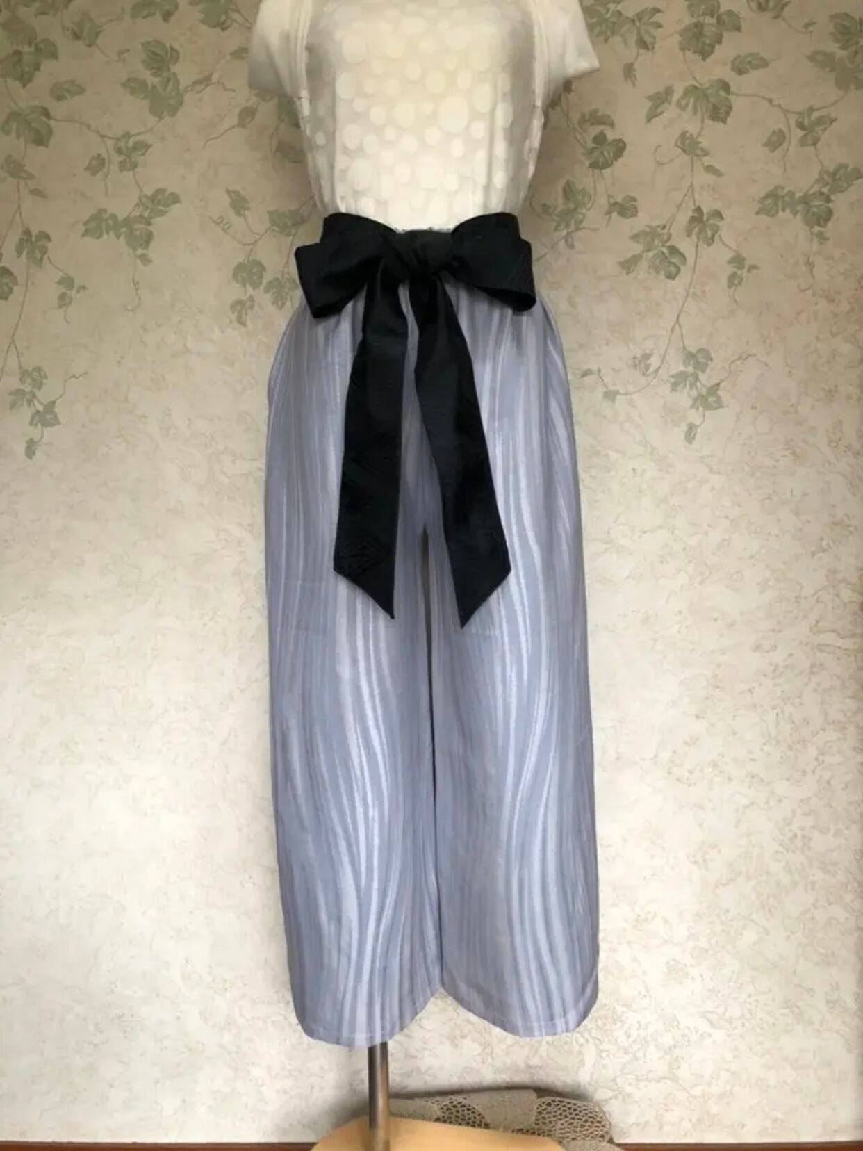 画像のベルトとして使用しておりますのは帯リメイクのサッシュベルトで、このような組み合わせをして頂きますとずいぶん雰囲気が変わってフォーマルにもご使用いただけると思います。