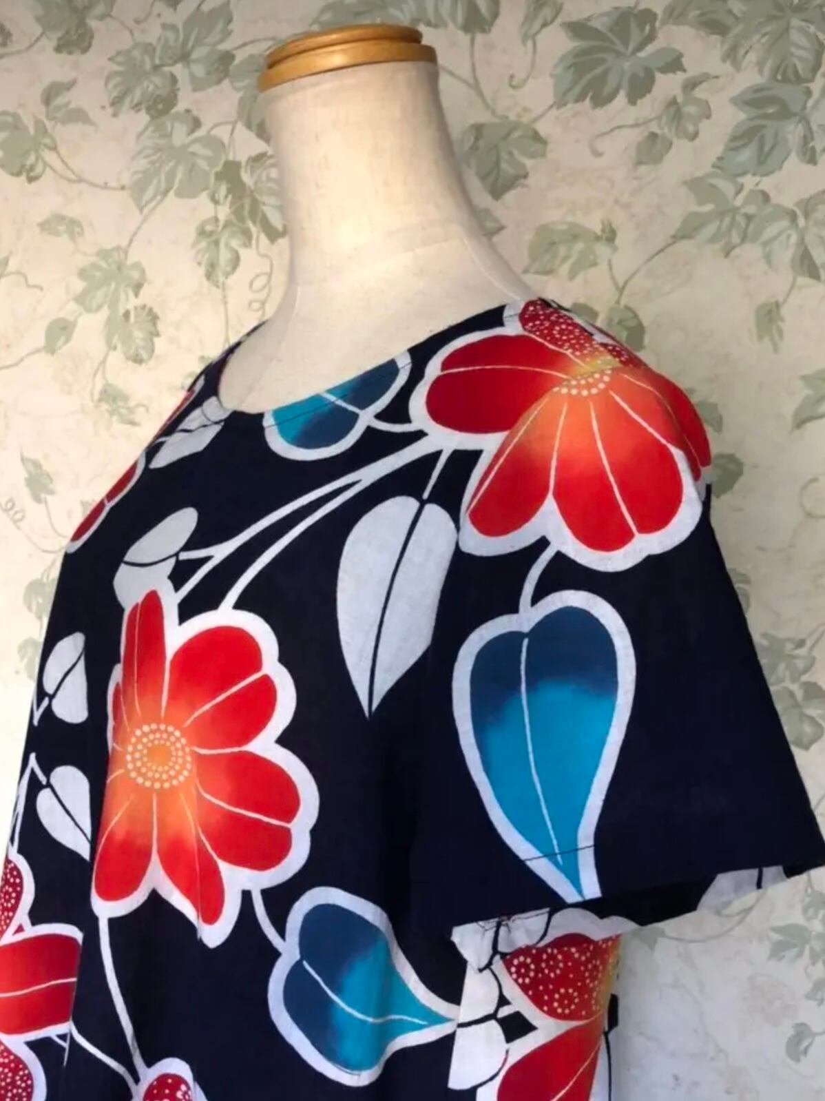 【浴衣リメイク】涼し気な 半袖 Aラインワンピース