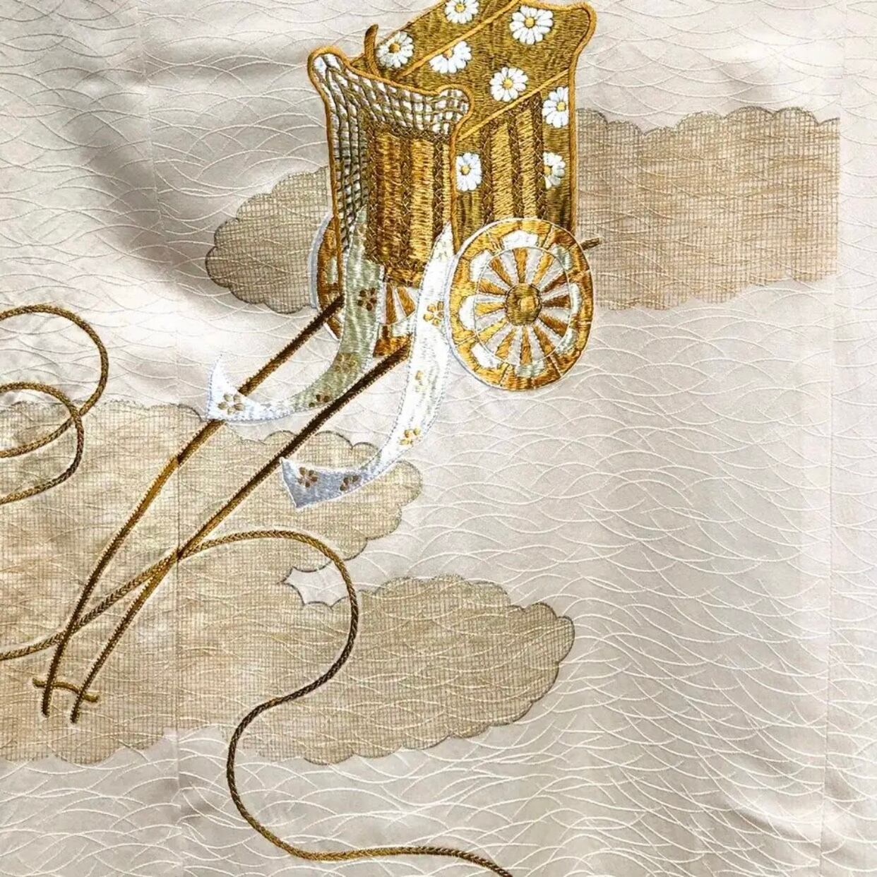 背中に御所車の柄を全面的に使用し華やかな逸品に仕上げました。
