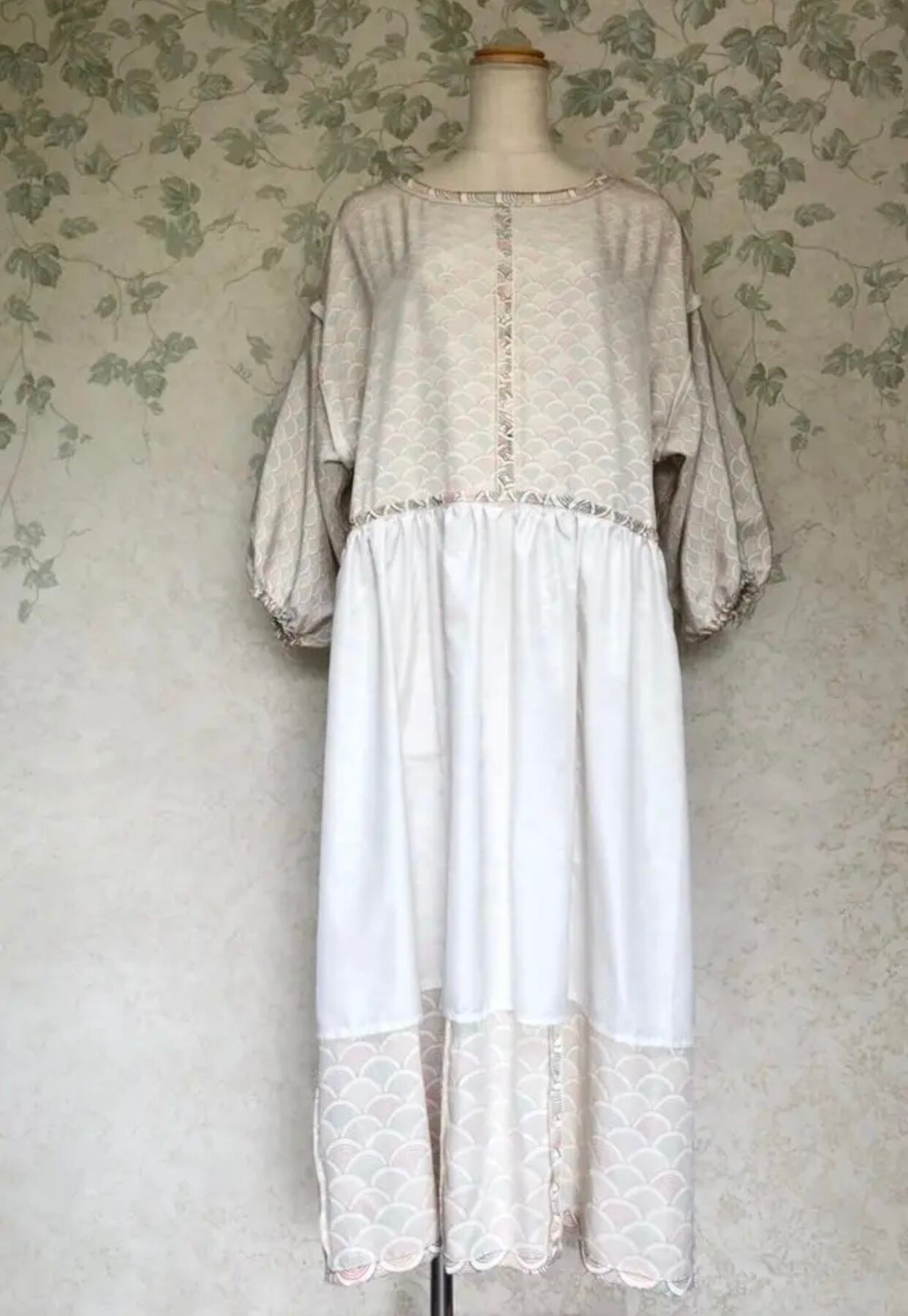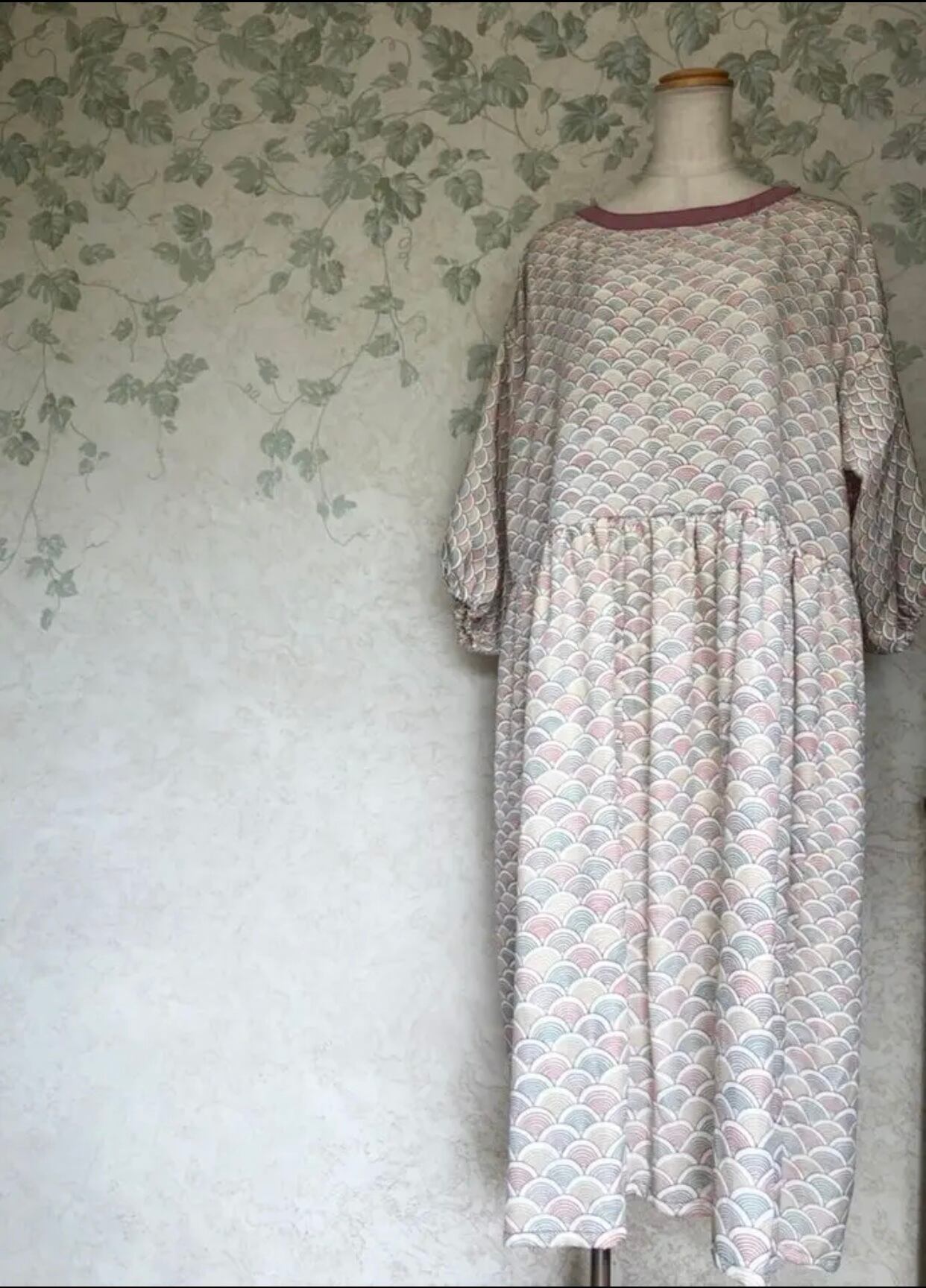 古典的な着物柄ですが柄の大小と色使いが現代的な雰囲気を醸し出しているので年齢やサイズを問わず着こなして頂ける個性的なワンピースです。