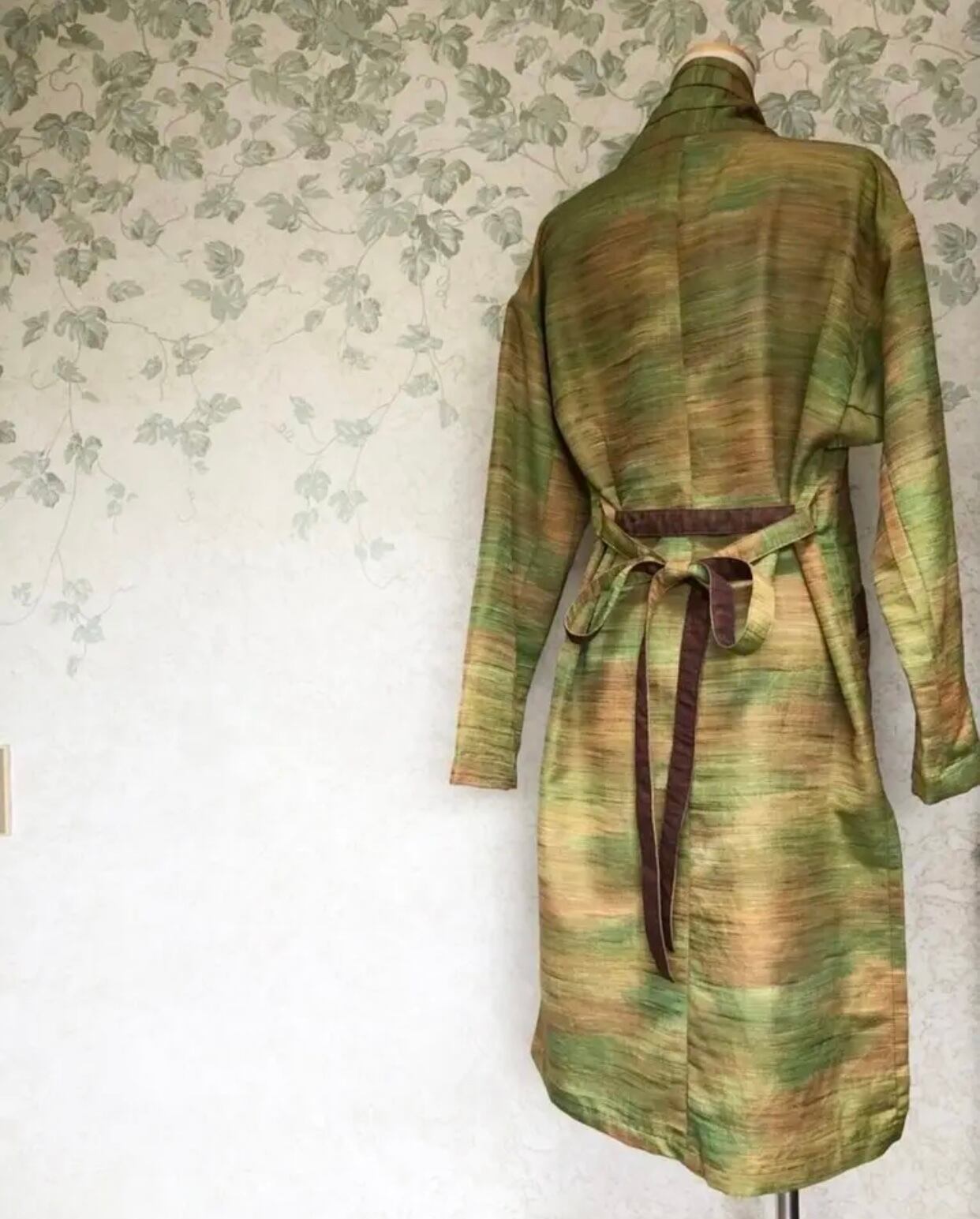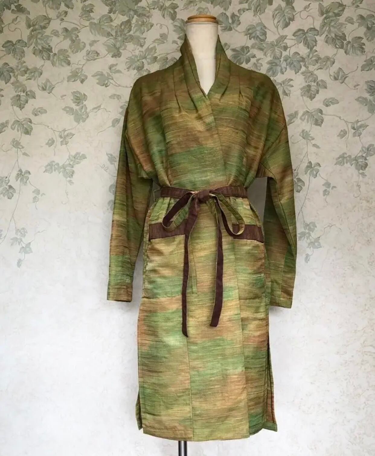 少し厚手のお着物を使用し袖丈も同デザインのものより少し長めにしましたので秋から冬にかけてお手軽なコート感覚でご着用いただけます。