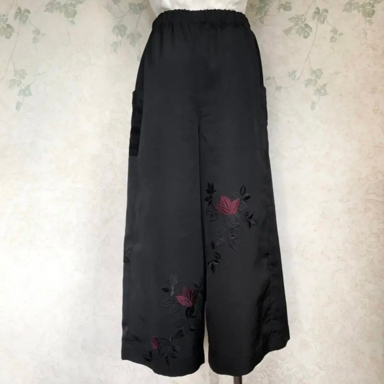 【着物リメイク】スカンツ ガウチョ パンツ 刺繍黒