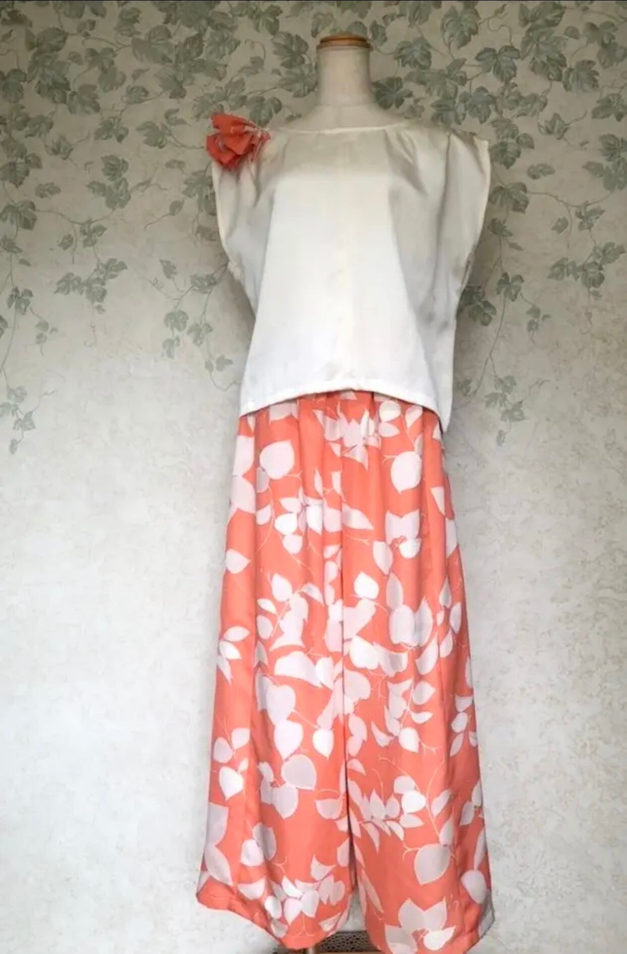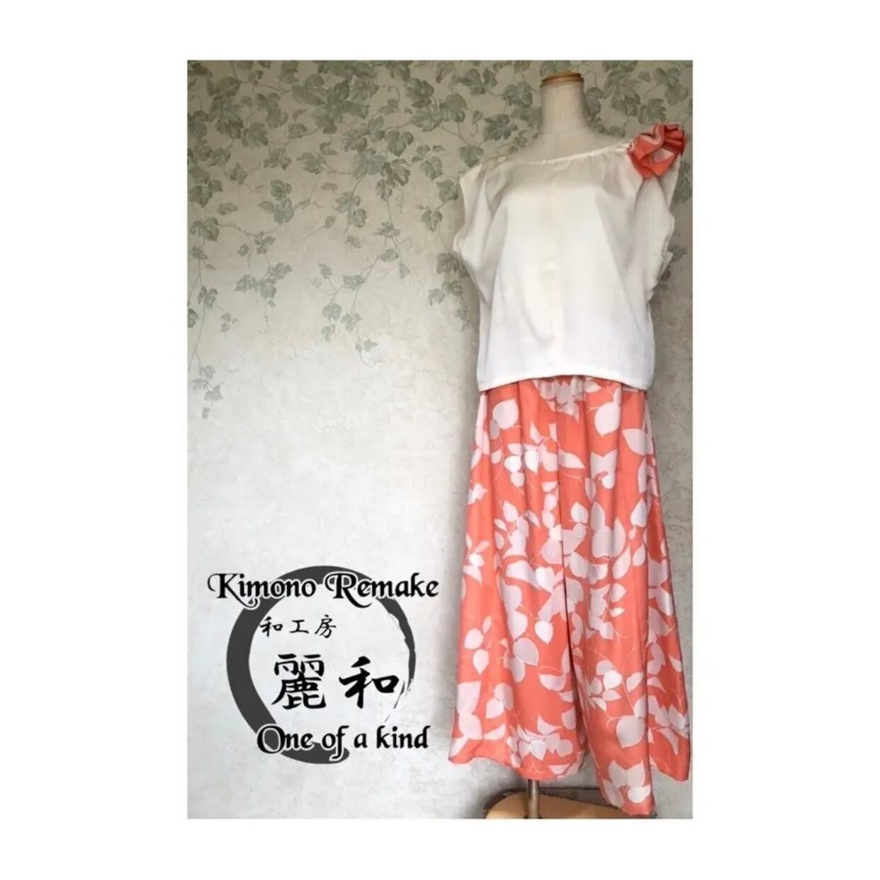 【着物リメイク】暖かい陽だまり 肩フリル セットアップ