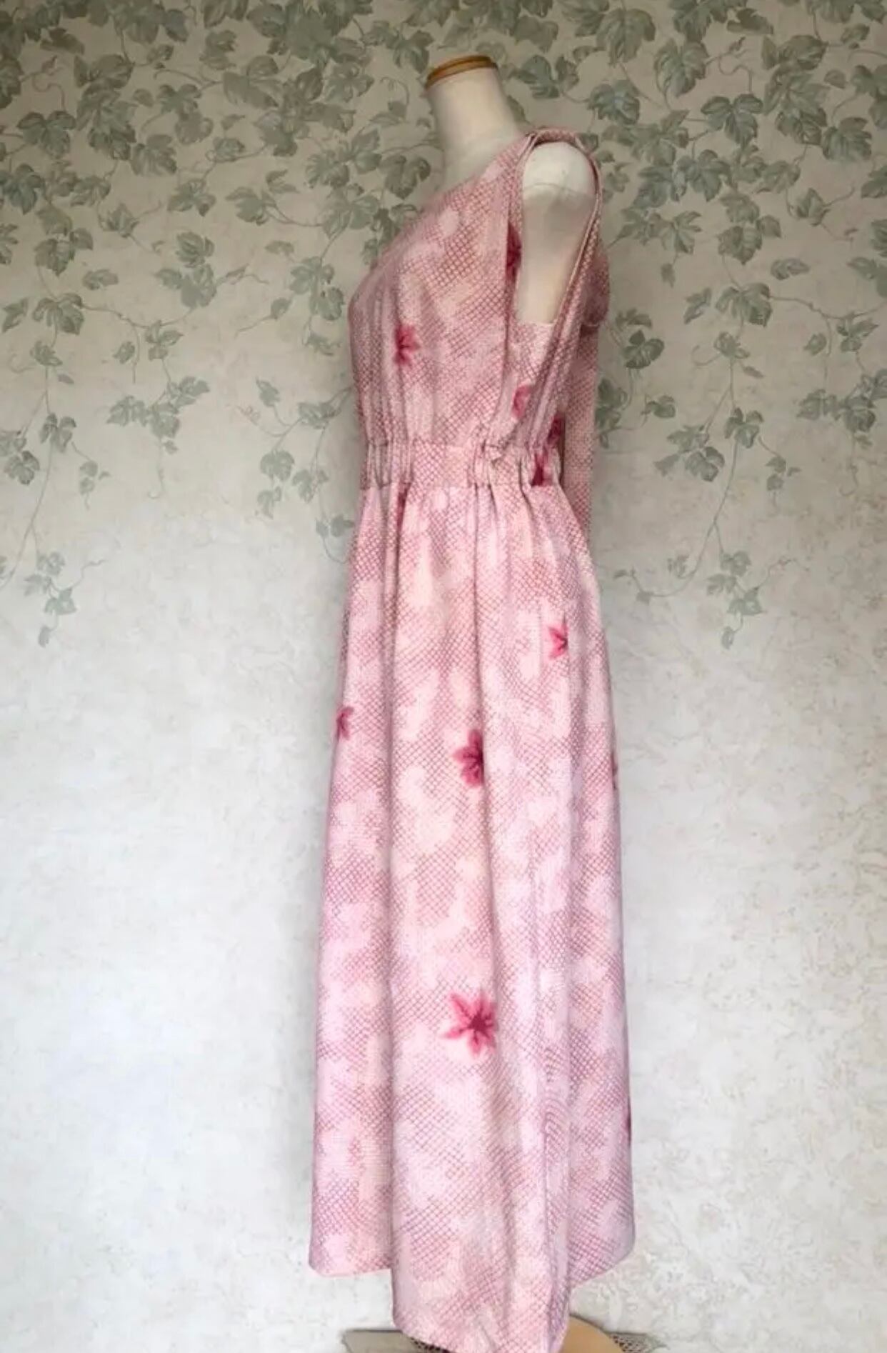 春から初夏にかけて梅雨のうっとうしさも吹き飛ばしてくれそうな優しいピンクの絞り柄の和風独特な着物地で大人気のバックリボンワンピースをお作りいたしました。