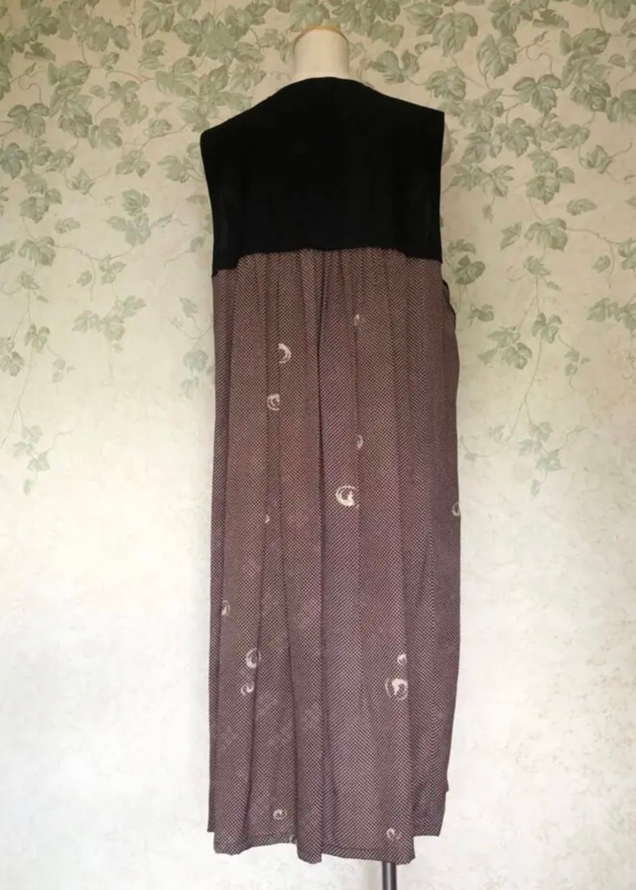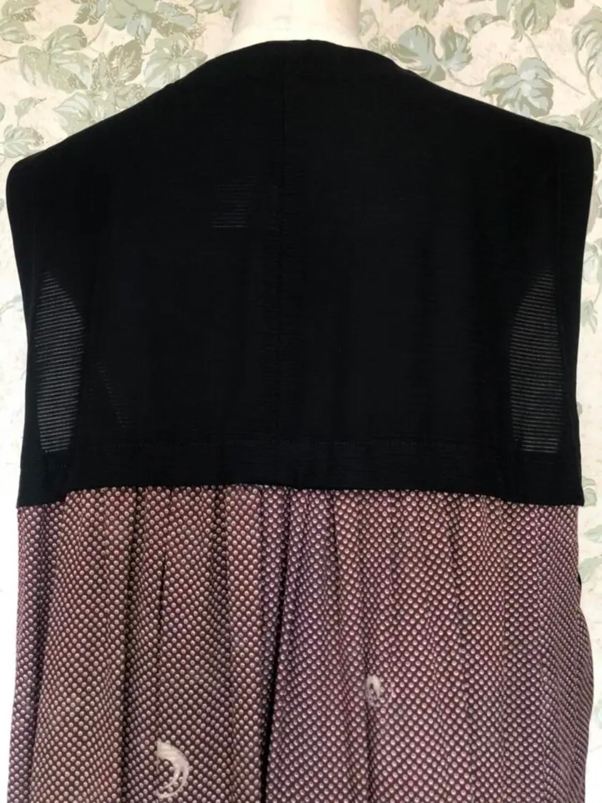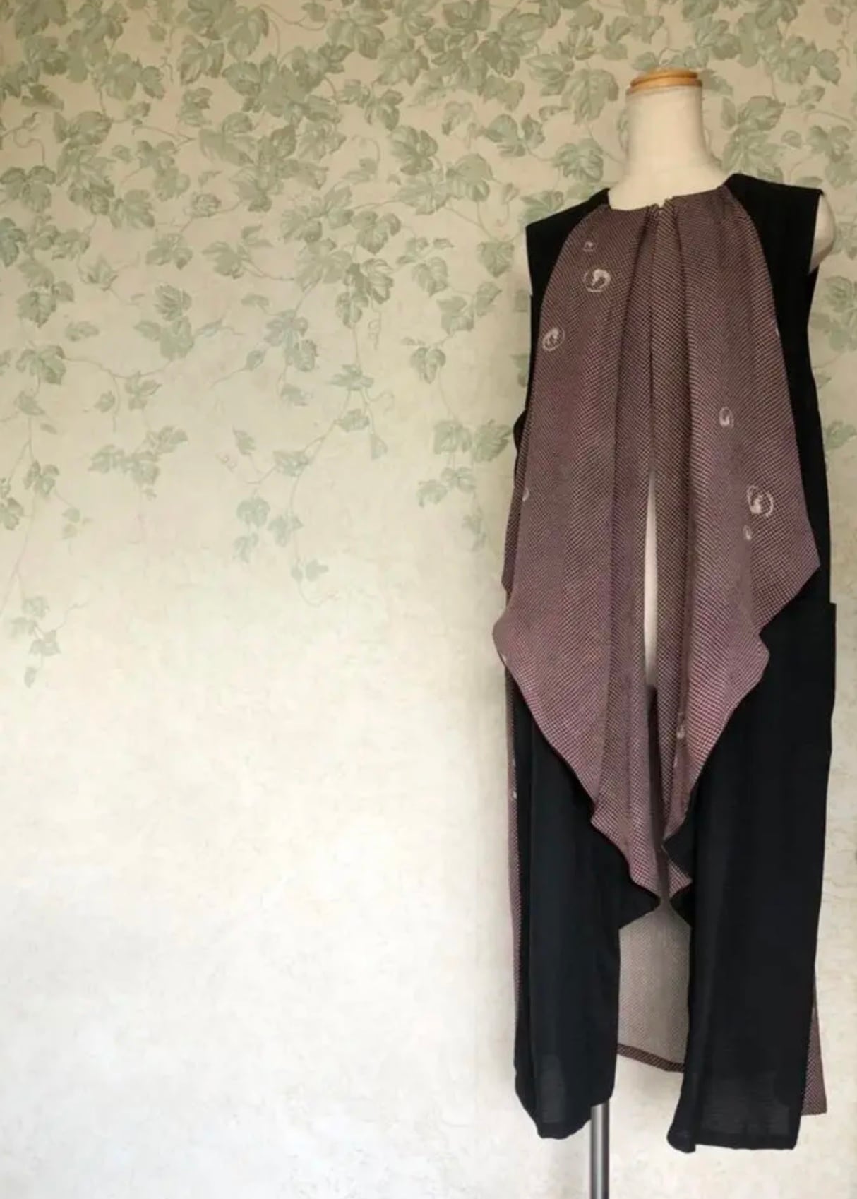 上質な光沢のあるシルクのお着物と夏の絽のお着物を合わせてドレープの綺麗なベストを着物リメイク致しました。