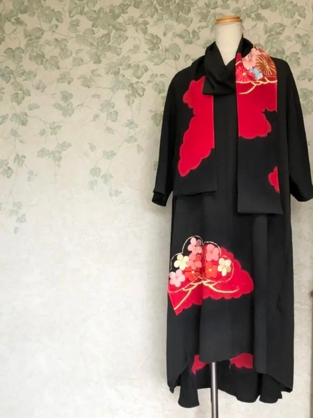 【着物リメイク】豪華 留袖リメイク ワンピース ストール付き