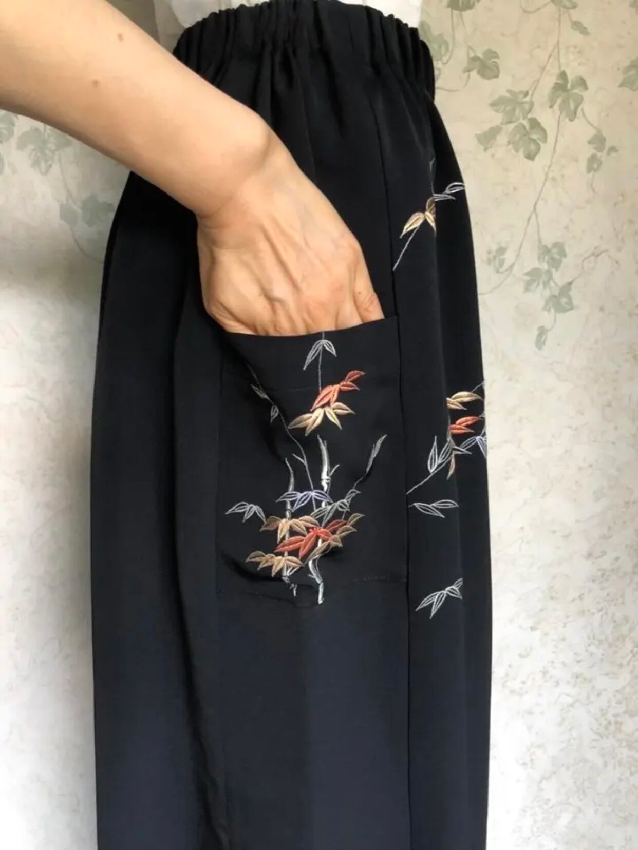 【着物リメイク】スカンツ ガウチョ パンツ 黒笹