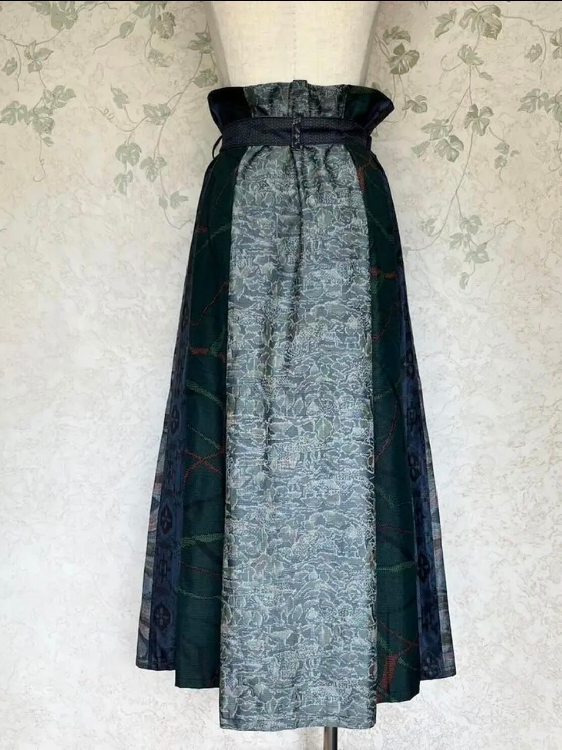 【着物リメイク】大島紬 ミックスアラカルトタックラップスカート